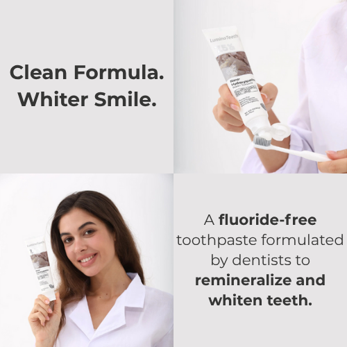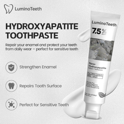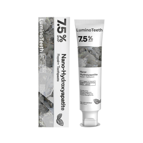 Our toothpaste uses 7.5 percent nano hydroxyapatite nHAp, the same mineral that makes up enamel. These ultra fine particles fill microscopic pores to smooth the tooth surface and help reduce sensitivity while strengthening and protecting. A gentle silica polishing system deep cleans and lifts everyday stains from coffee, tea, and wine without peroxide. Fluoride free and safe for daily use, it leaves teeth cleaner, stronger, and naturally brighter after every brush.